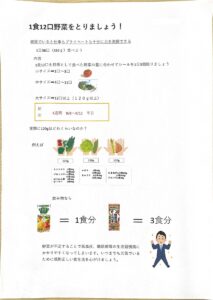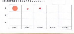 👇総務課での体験の一環として作ってもらったもので、朝・昼・晩に食べた野菜の量を、大中小のシールでペタペタ記録していきます。