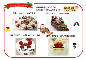 今年のクリスマスケーキは、画像のラインナップの中から、事前にくじ引きで決定しています👇
